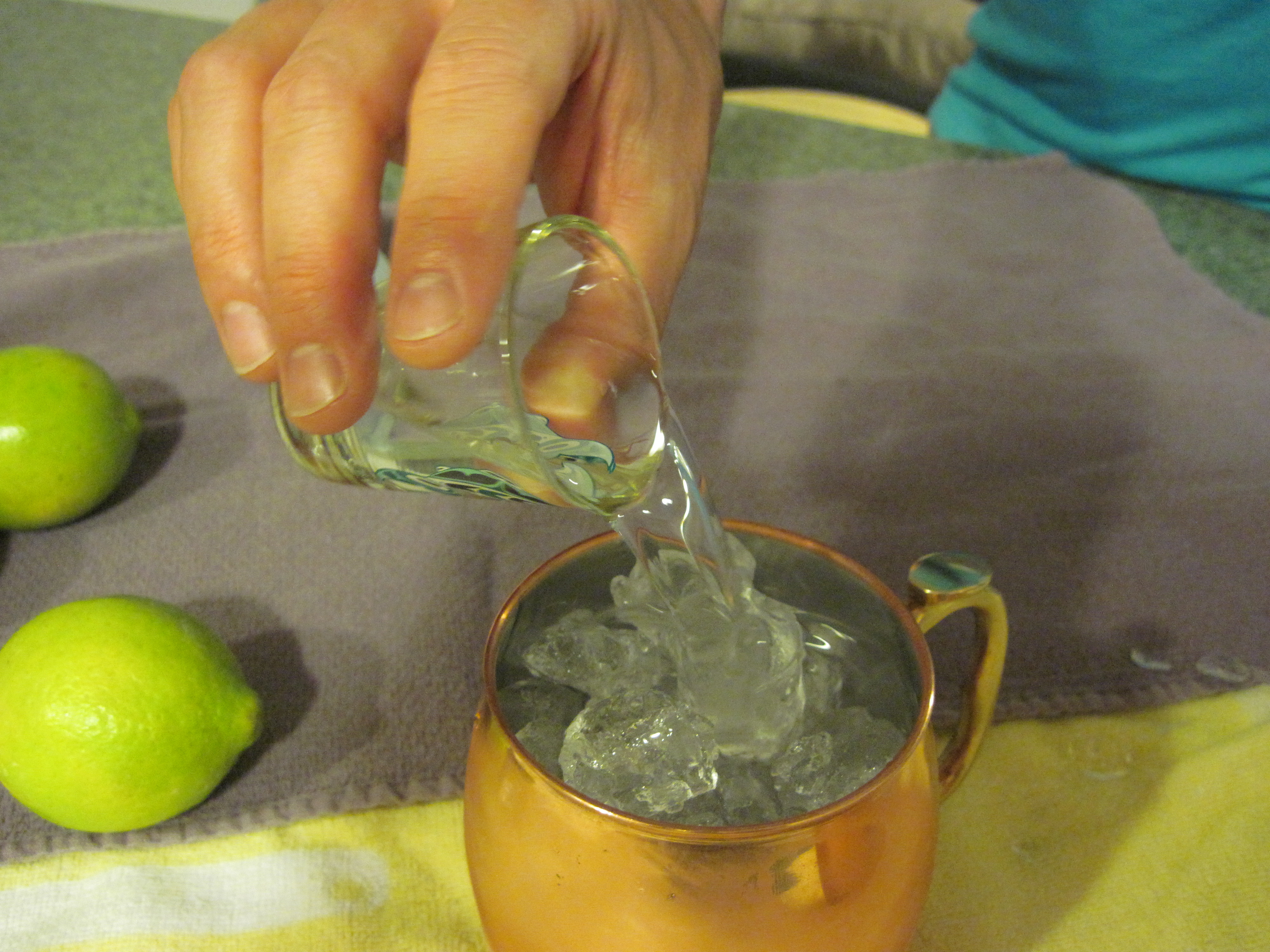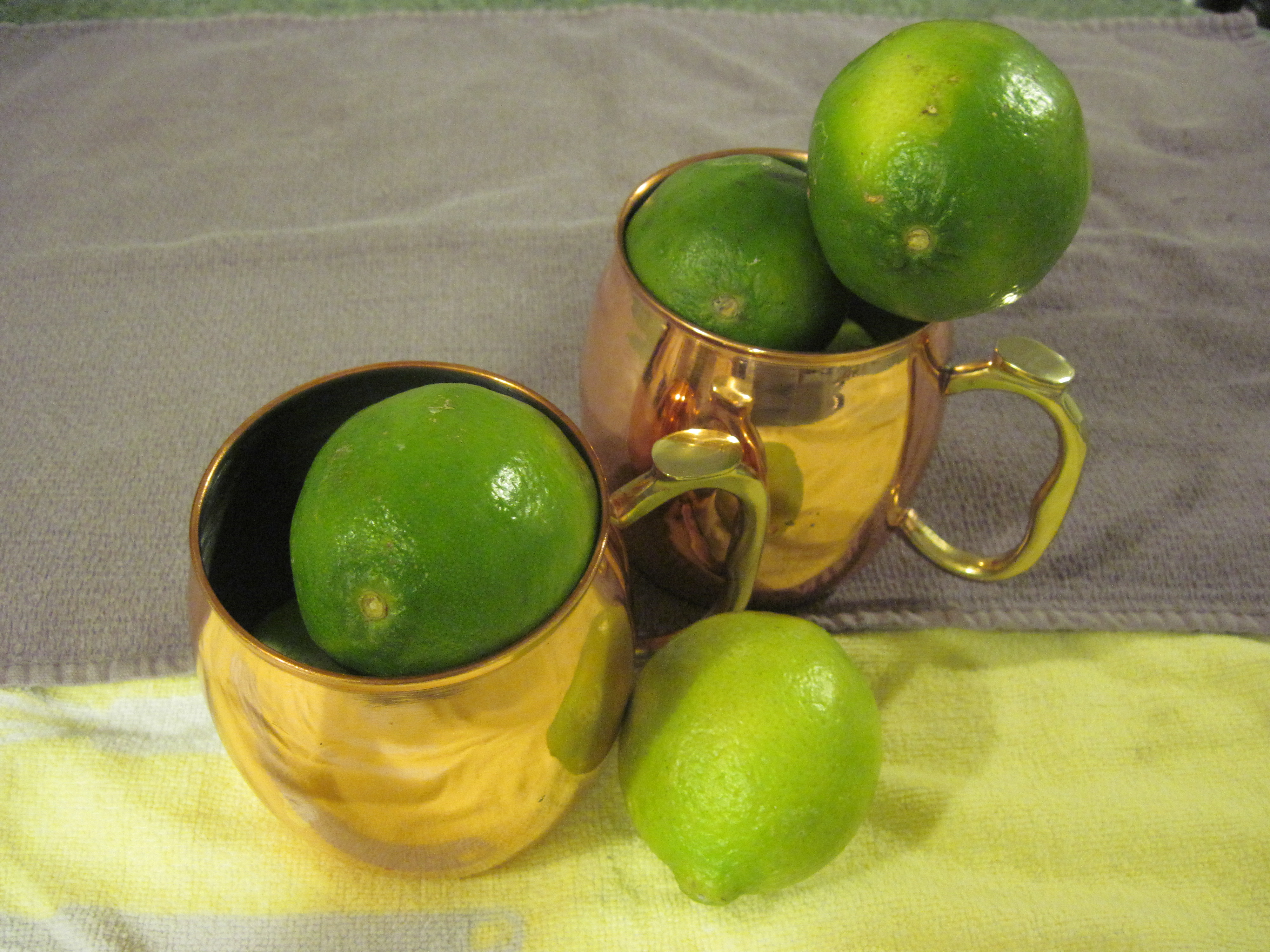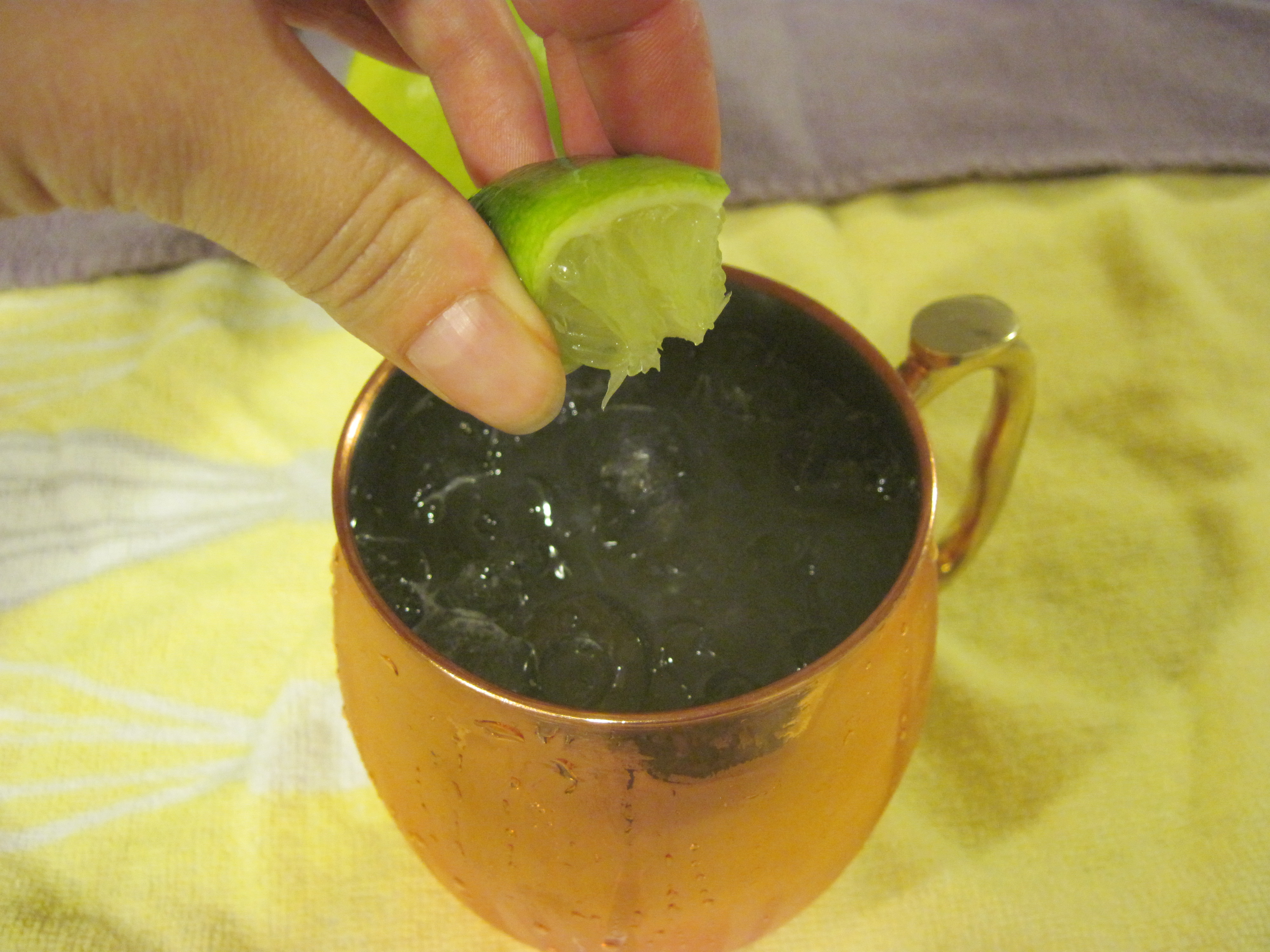 Though they were created in the 1970s (according to the box containing my new copper plated cup), Moscow Mules (a drink consisting of lime, vodka, and ginger beer) have become increasingly popular in the last couple of years. I’ve sampled a few of these popular drinks at different establishments, and while I found them okay, I was not that excited about them. Recently, however, I decided to jump on the Moscow Mule band wagon. A few weeks ago, while dining at a sushi restaurant in Bigfork, Montana, the bartender was making Moscow Mules for a couple of customers. My friend didn’t know what to order, so I suggested she try one. I tried a drink of her Moscow Mule and it was delicious! So, when I got home, I decided to emulate the recipe. I think there are two things that seemed really important when making the drink: 1) enough lime and 2) giving it a little shake. The drink I made turned out pretty delicious, so I thought I would share with you what I did. Also, I broke down and bought the copper mug! I thought if I was going to do this, I may as well go all the way. I found these mugs at Bed, Bath, and Beyond for $14.99- the cheapest ones I found.