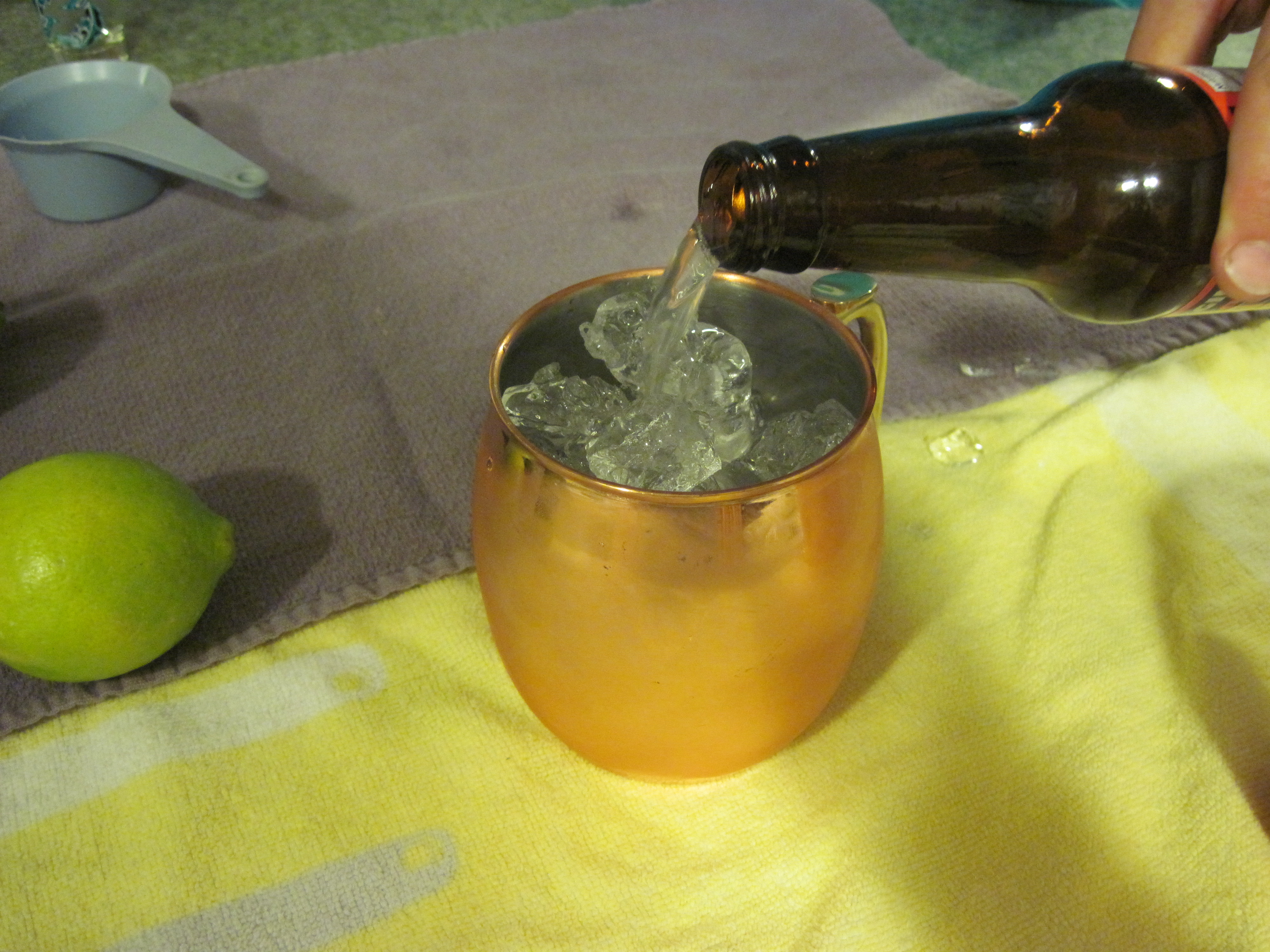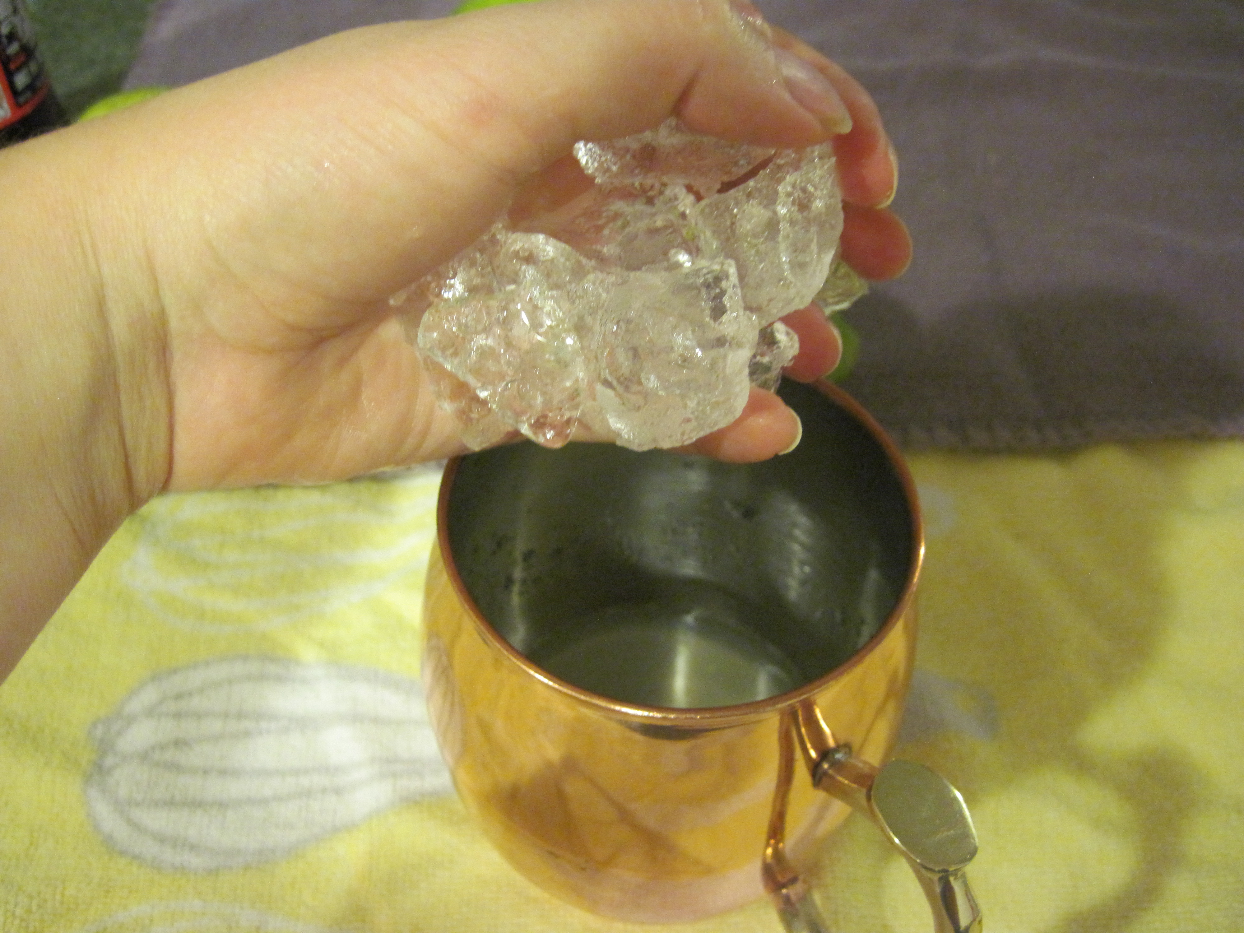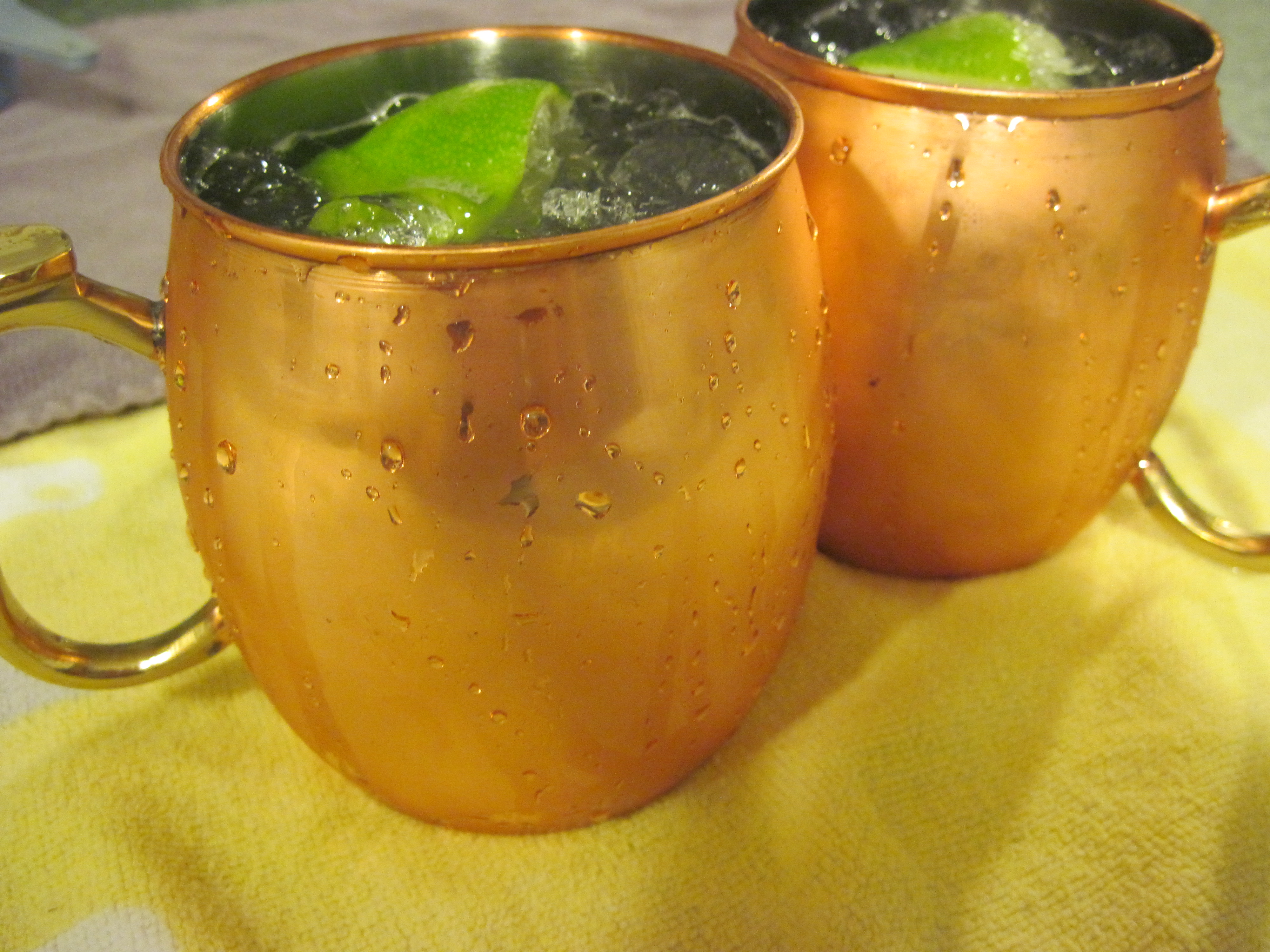 Though they were created in the 1970s (according to the box containing my new copper plated cup), Moscow Mules (a drink consisting of lime, vodka, and ginger beer) have become increasingly popular in the last couple of years. I’ve sampled a few of these popular drinks at different establishments, and while I found them okay, I was not that excited about them. Recently, however, I decided to jump on the Moscow Mule band wagon. A few weeks ago, while dining at a sushi restaurant in Bigfork, Montana, the bartender was making Moscow Mules for a couple of customers. My friend didn’t know what to order, so I suggested she try one. I tried a drink of her Moscow Mule and it was delicious! So, when I got home, I decided to emulate the recipe. I think there are two things that seemed really important when making the drink: 1) enough lime and 2) giving it a little shake. The drink I made turned out pretty delicious, so I thought I would share with you what I did. Also, I broke down and bought the copper mug! I thought if I was going to do this, I may as well go all the way. I found these mugs at Bed, Bath, and Beyond for $14.99- the cheapest ones I found.