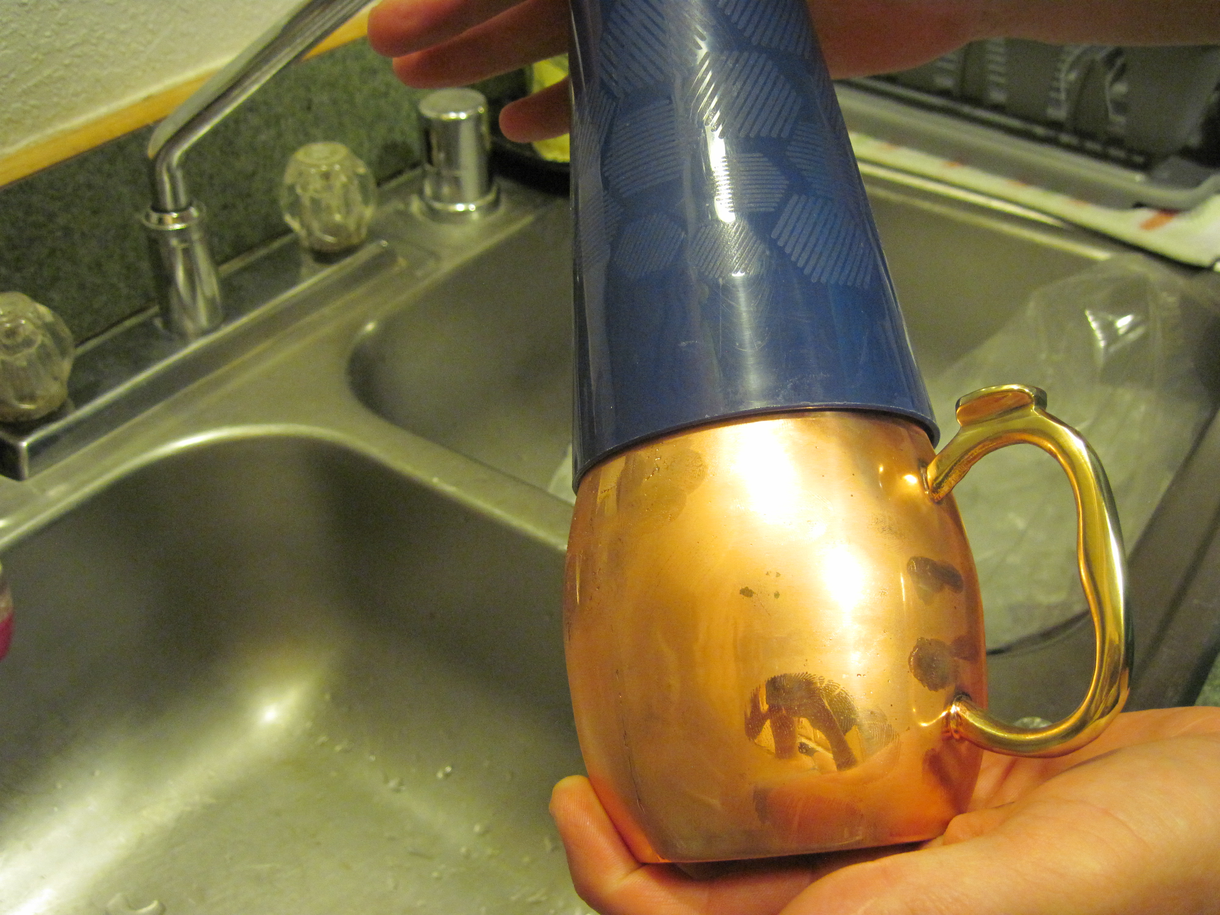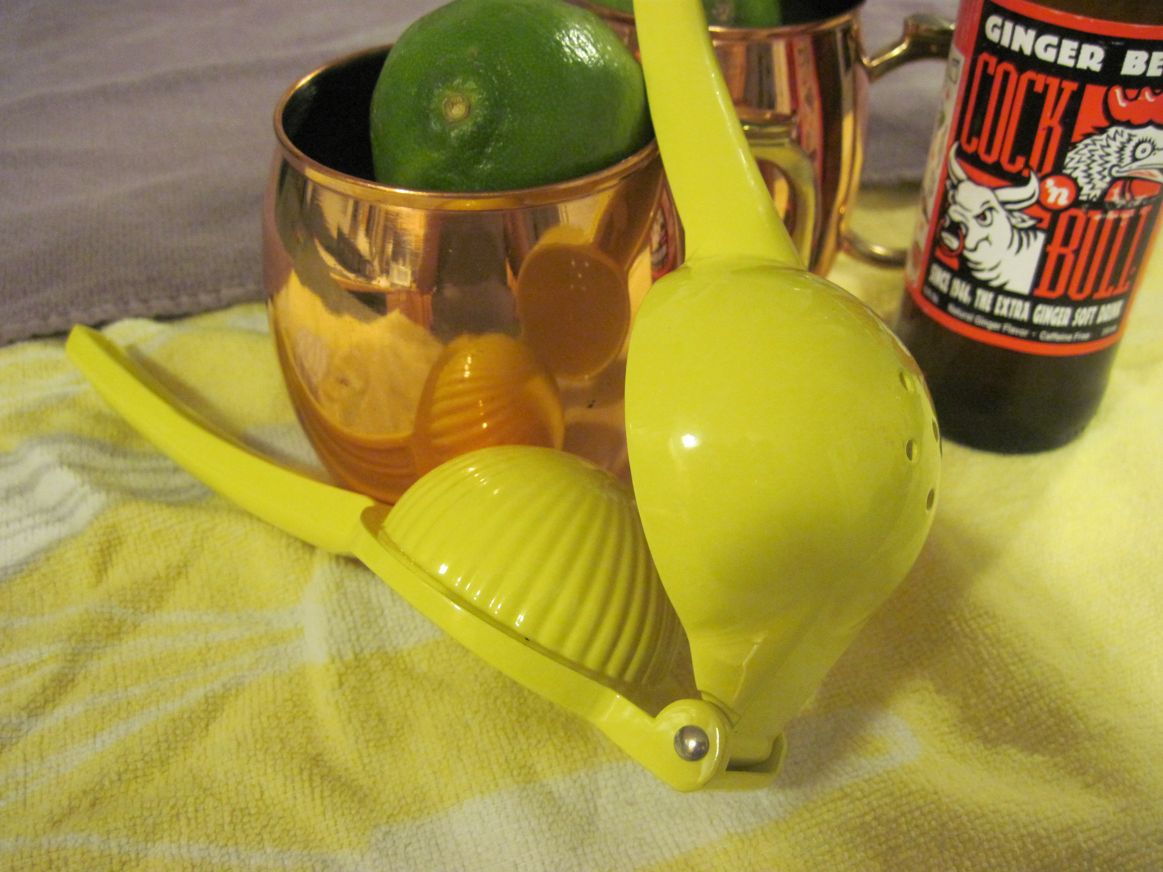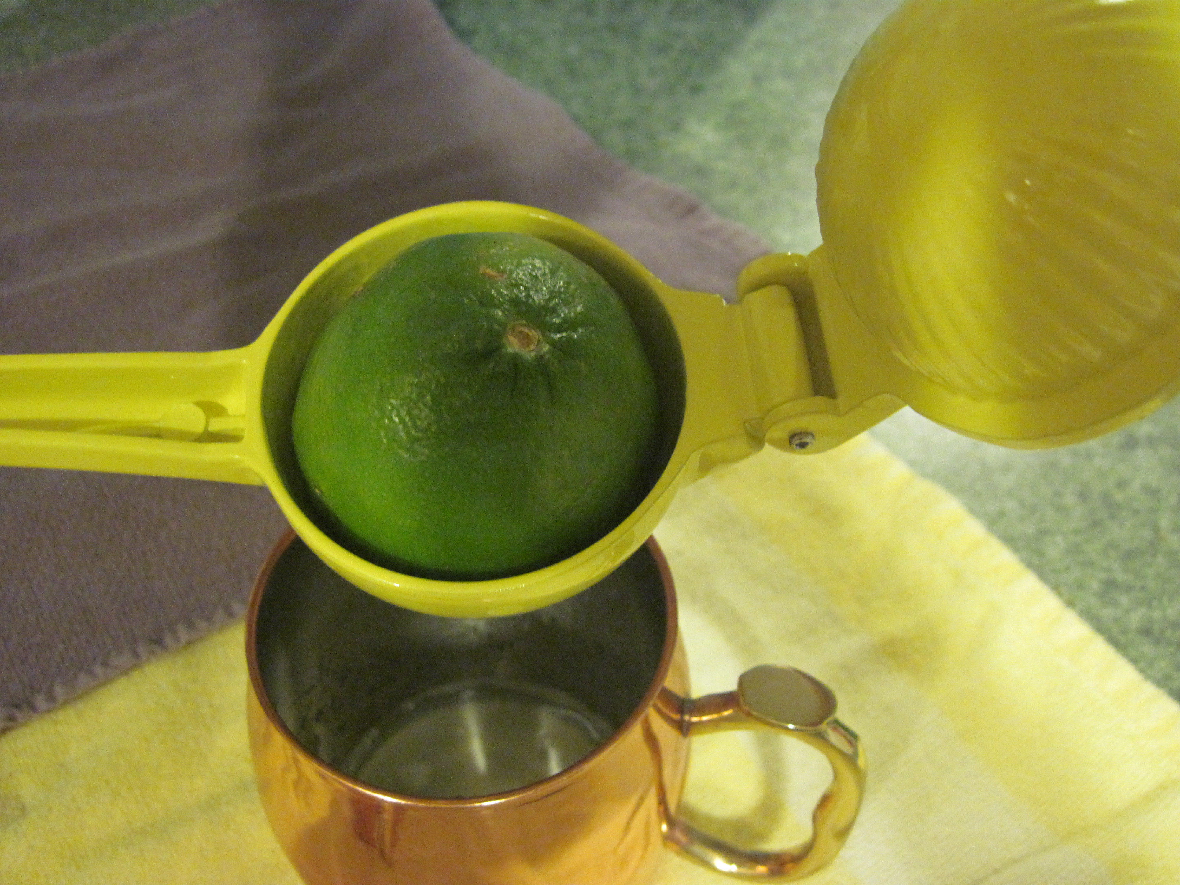 After washing out my new mug (which is actually stainless steel inside and copper plated), I squeezed half a lime into the bottom of the cup with my fancy squeezy thing.