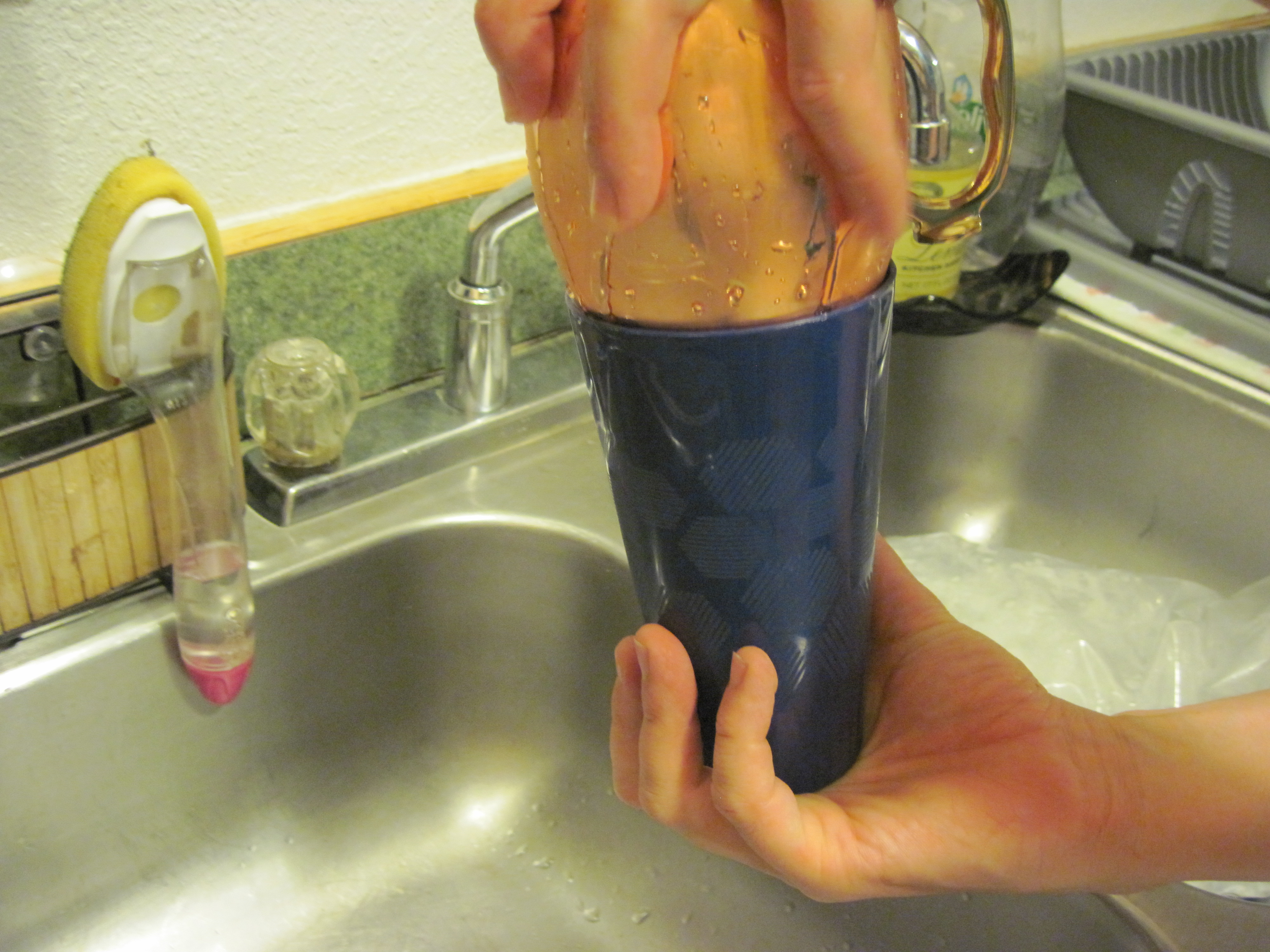 I believe the next step is very important! Mixin’ it all together! Alas, though I bought the fancy mug, I have not invested in a shaker. I think I will do this in the future, but for anyone out there that doesn’t have a fancy shaker, a cup that is a little wider than the rim of the mug will do. I suggest you do it over the sink:)