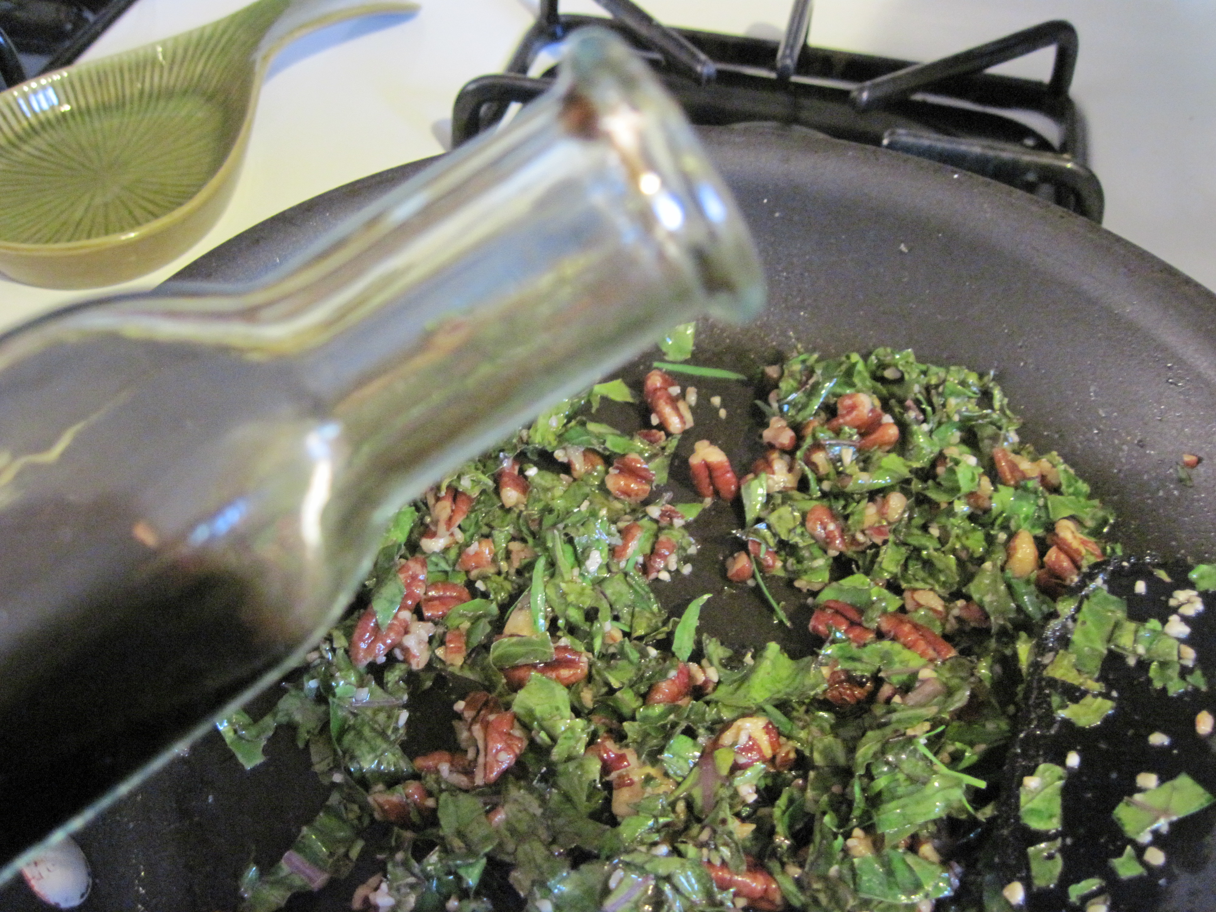 Give everything a nice stir, let it cook for a minute or two to let the flavors begin to meld. Then, add the pecans.