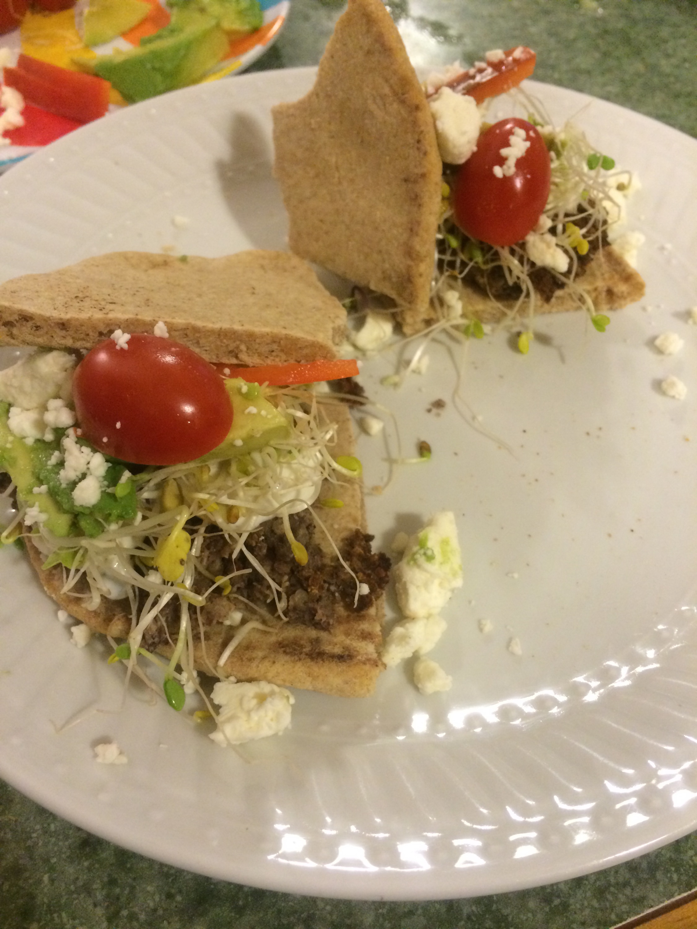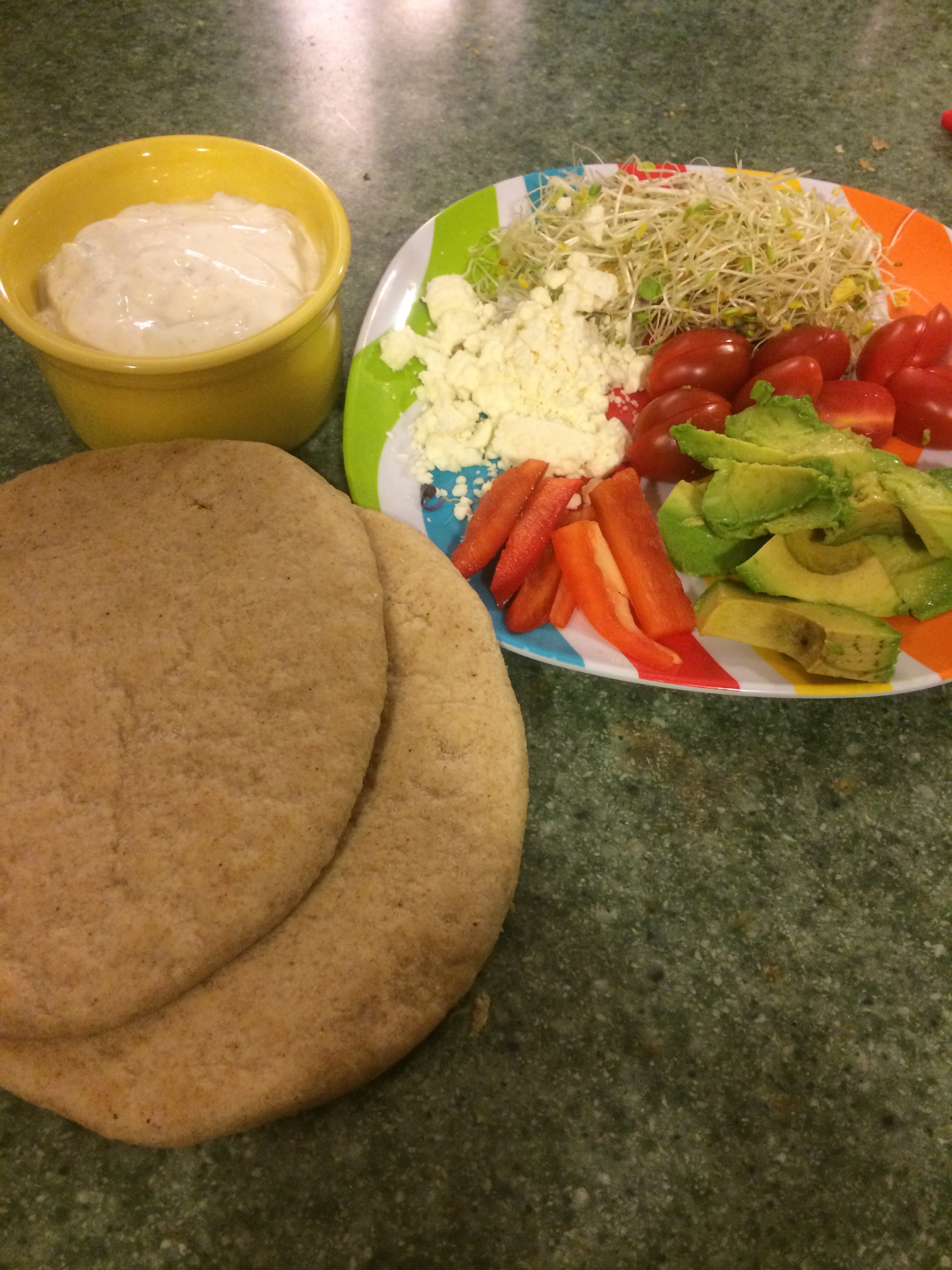 Toast or bake pitas until warm and then prepare as desired! Here are two different ways to put it all together…