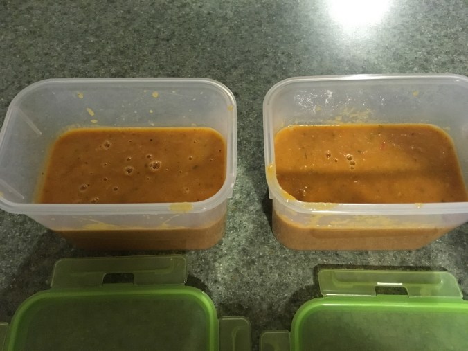 After the soup is blended, you can add a splash (or two) of cream or coconut cream/milk to add a little extra creaminess to the soup.  I’m freezing mine to have with grilled cheese when the weather starts to get cool!
